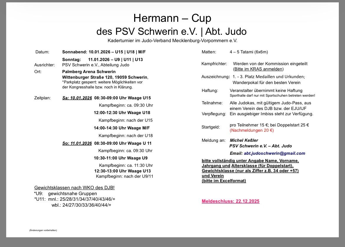 10.01 - 11.01.2026 - Hermann-Cup in Schwerin - U9 - M/F